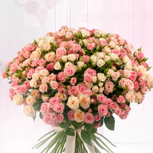 Вариант—Стандарт - кустовая роза - 5 шт.,лента