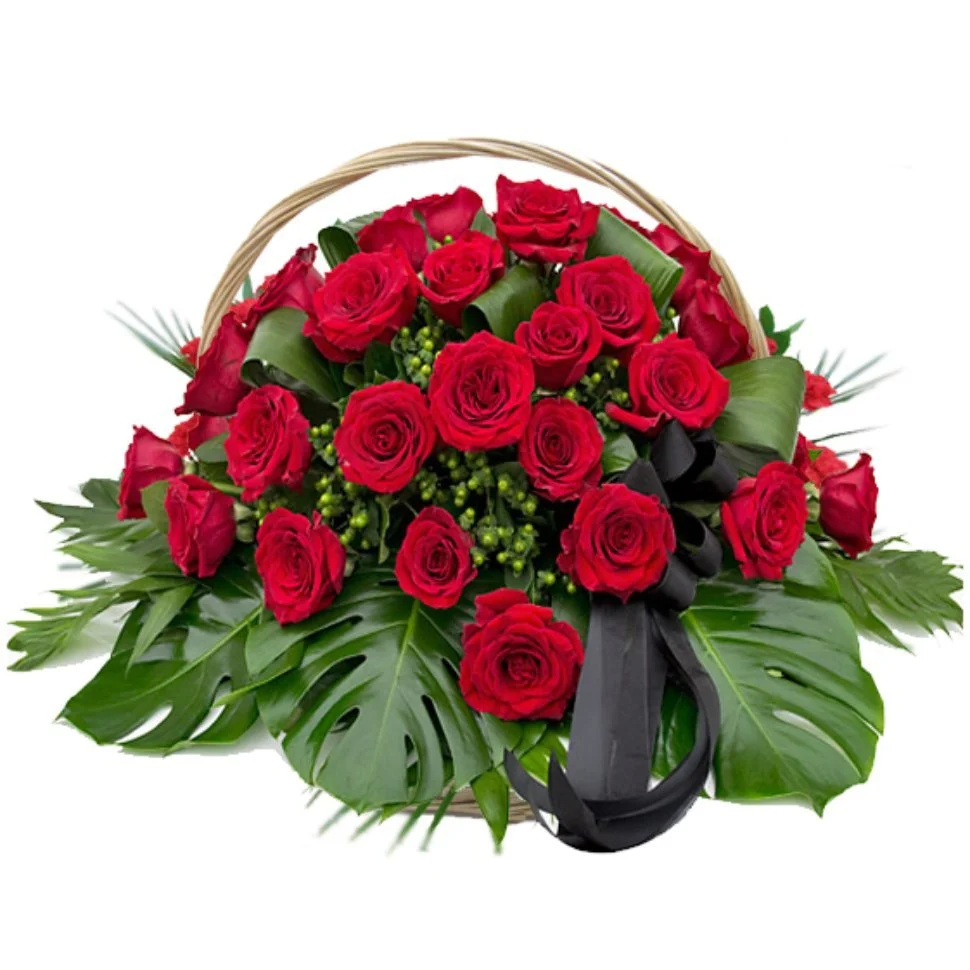 —Траурная корзина с красными розами
