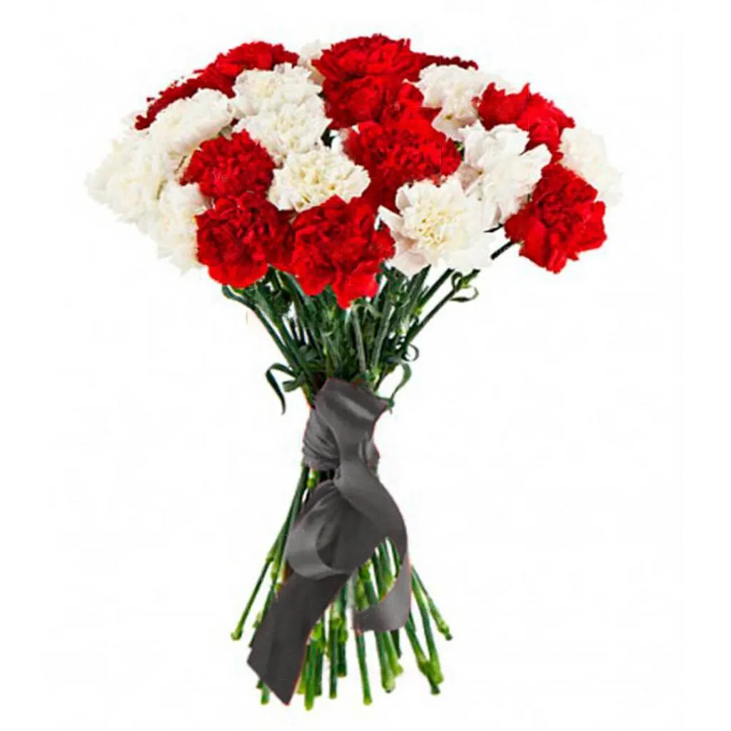 —Траурный букет из красных и белых гвоздик № 2