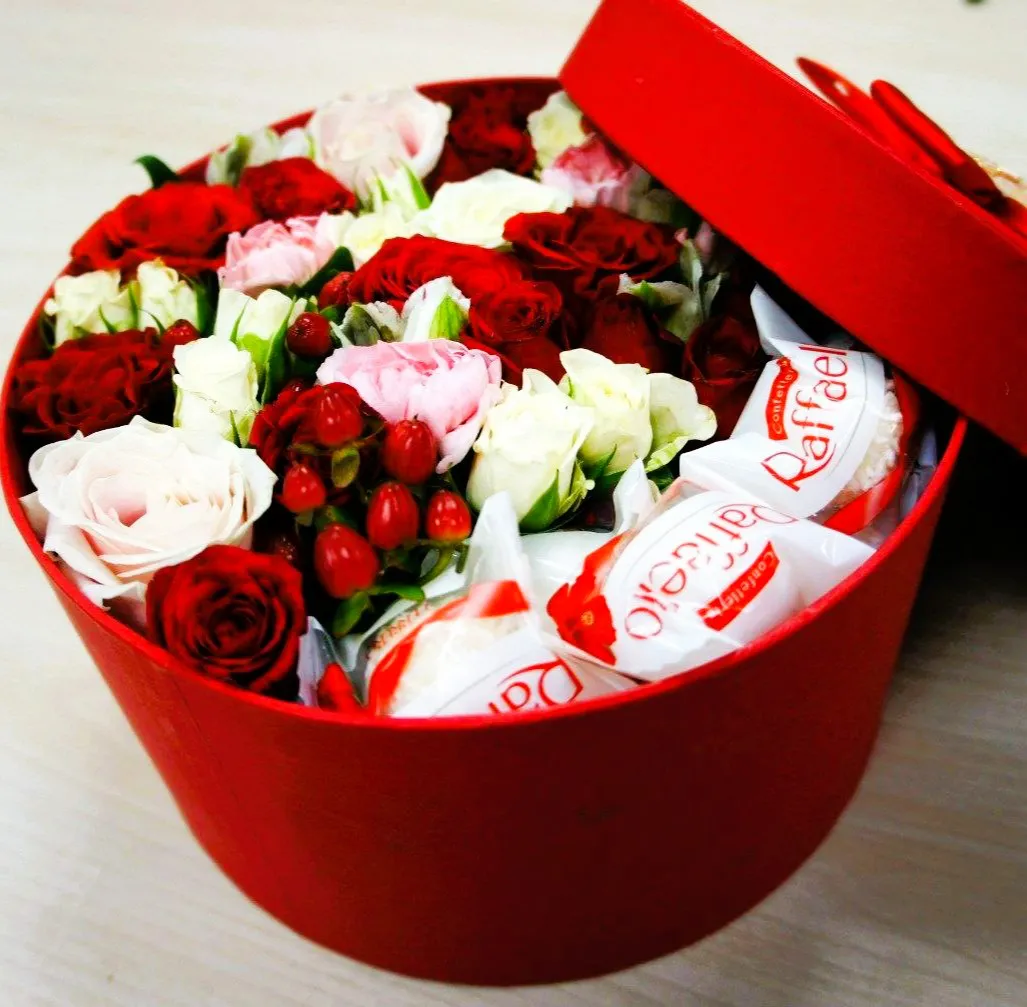 Закажите нашу сладкую коробку с розами и Рафаэлло и сделайте день вашего любимого человека незабываемым!